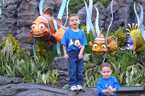 In Turtle Talk with Crush, Brandon got to talk to Crush and he answered back! We took some cool video inside, but no pictures (it was dark). This is the sign out front, which had a cool statue of Crushs friend, Nemo. |