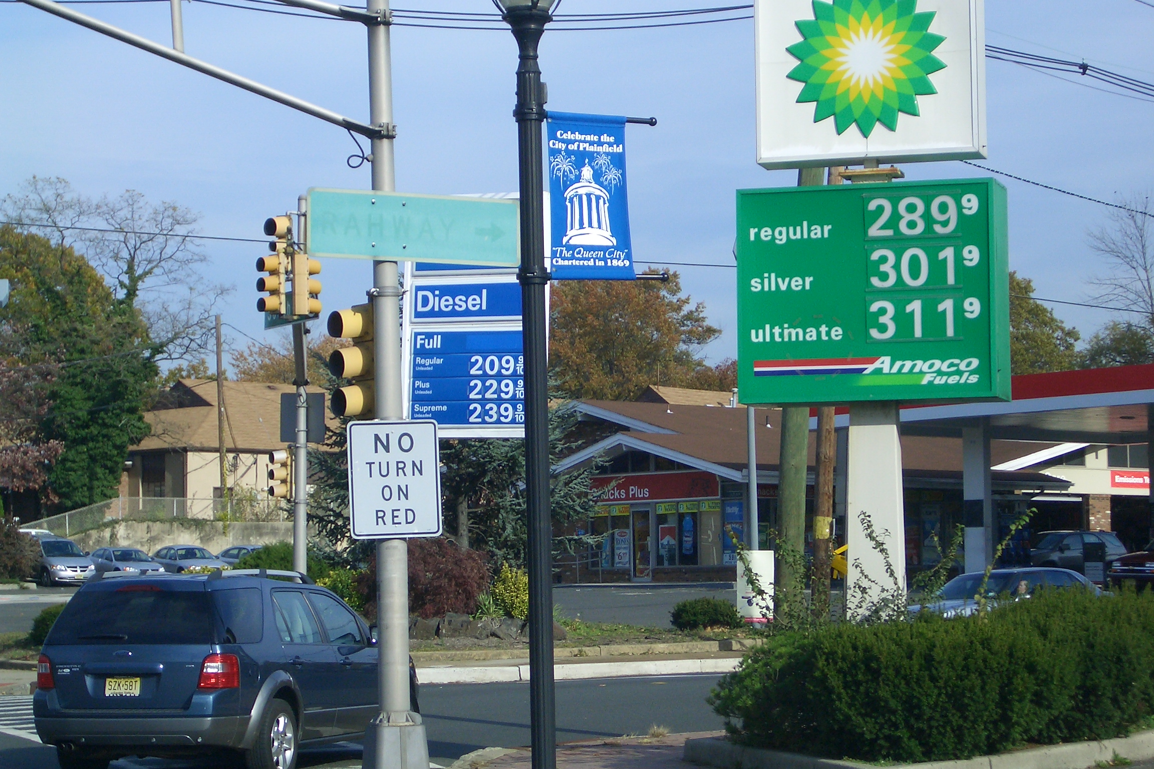 The station on the right closed down during the summer, but they never took the sign down. The station on the left is still open. And so I have a constant reminder about the "Fall fall" of 2006 for gas prices.